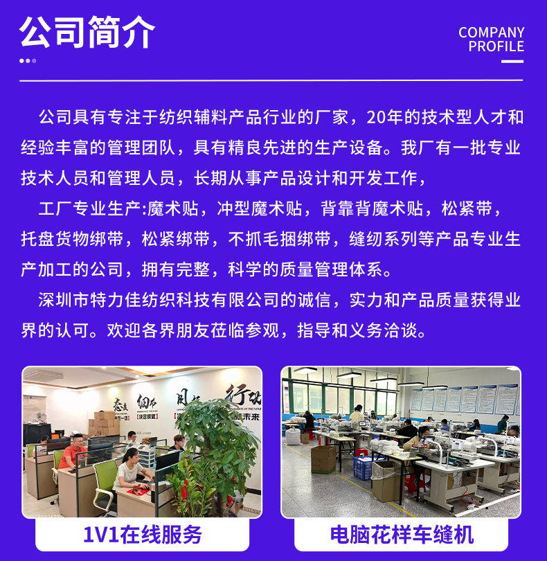专注生产魔术贴(粘扣带)、魔术贴扎带、松紧带、提花织带、货物捆绑带、弹性松紧魔术贴、物流货物绑带等产品